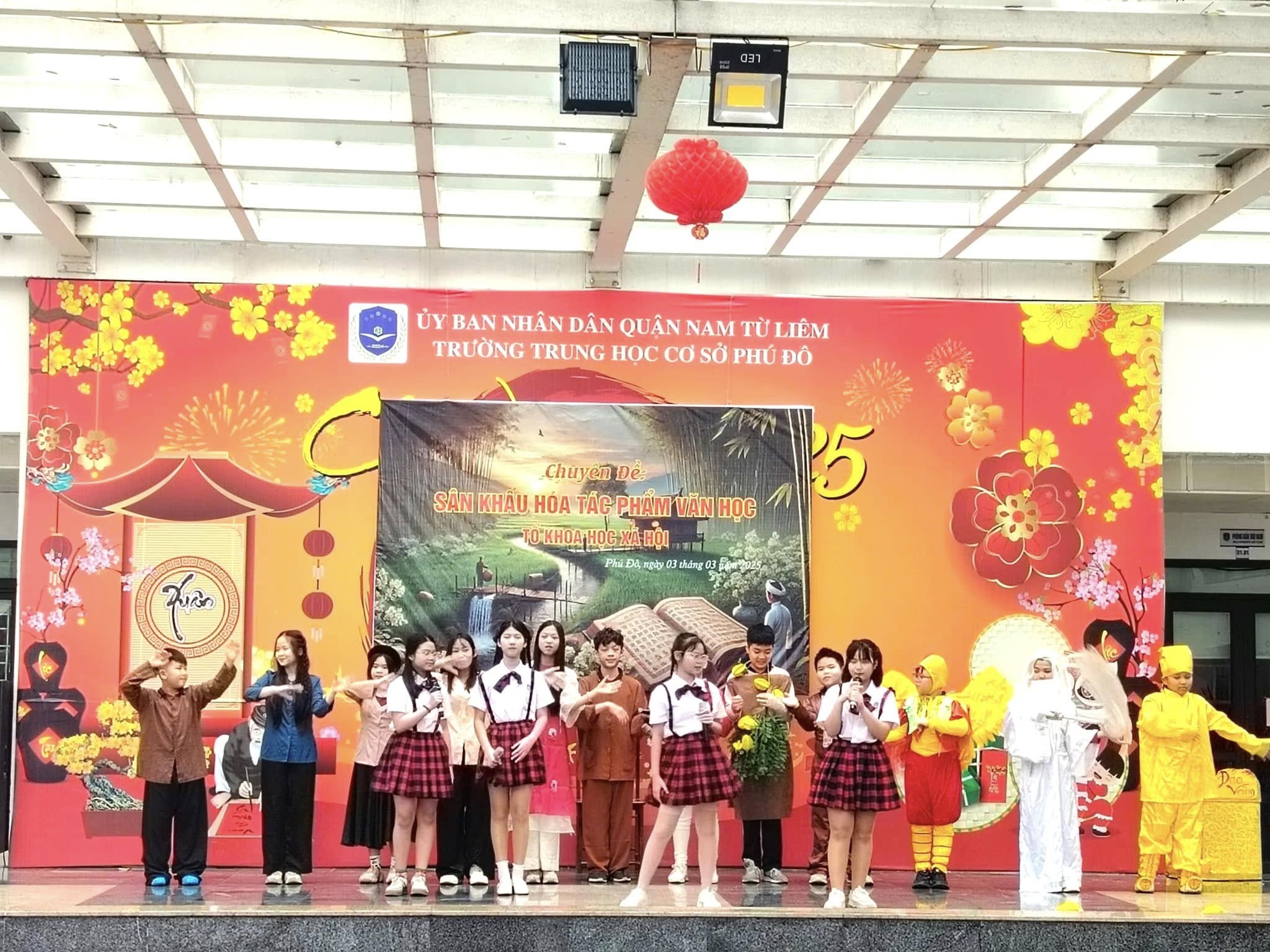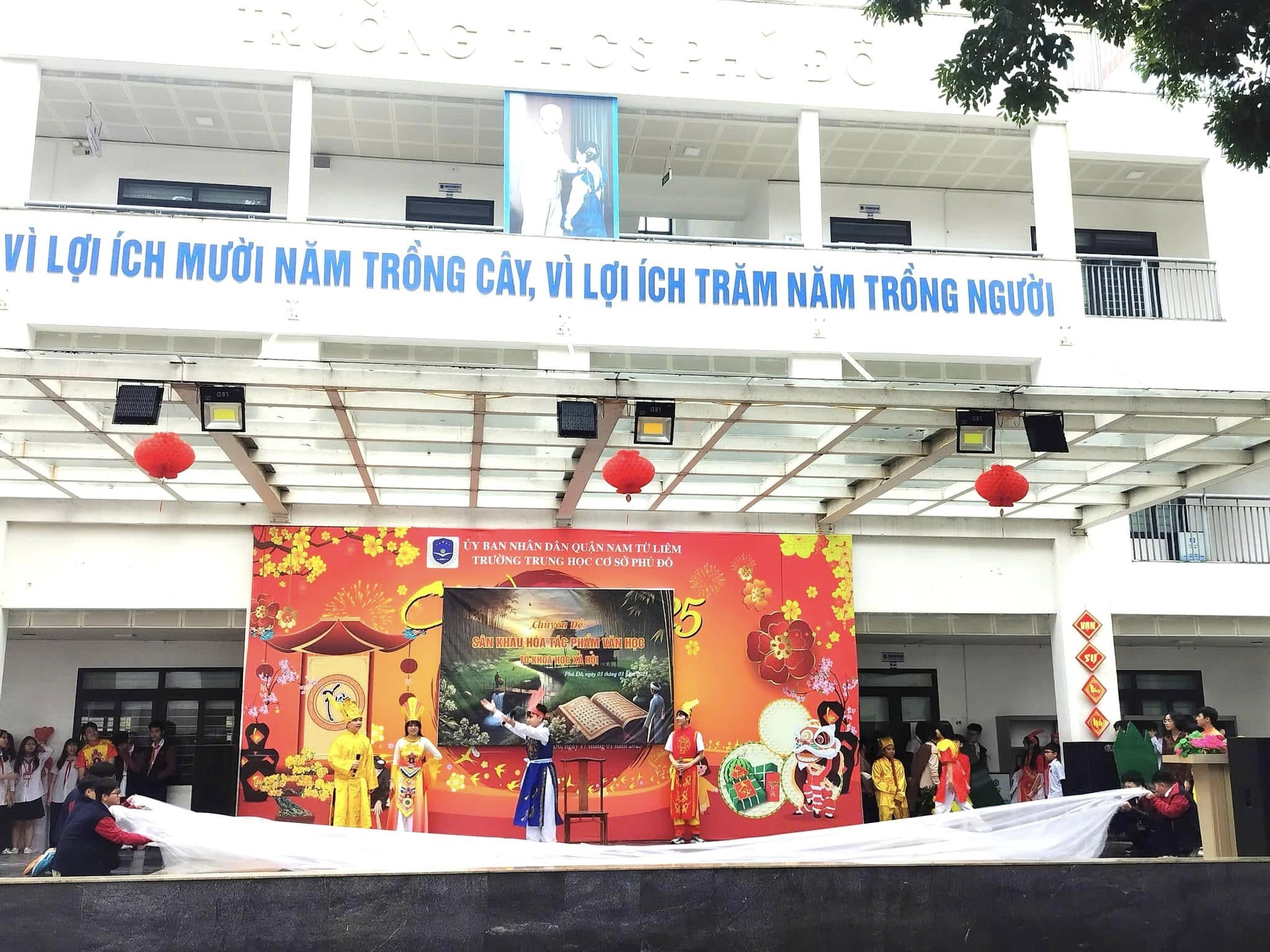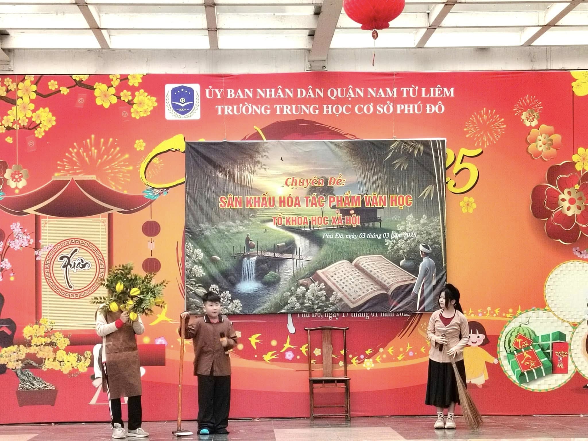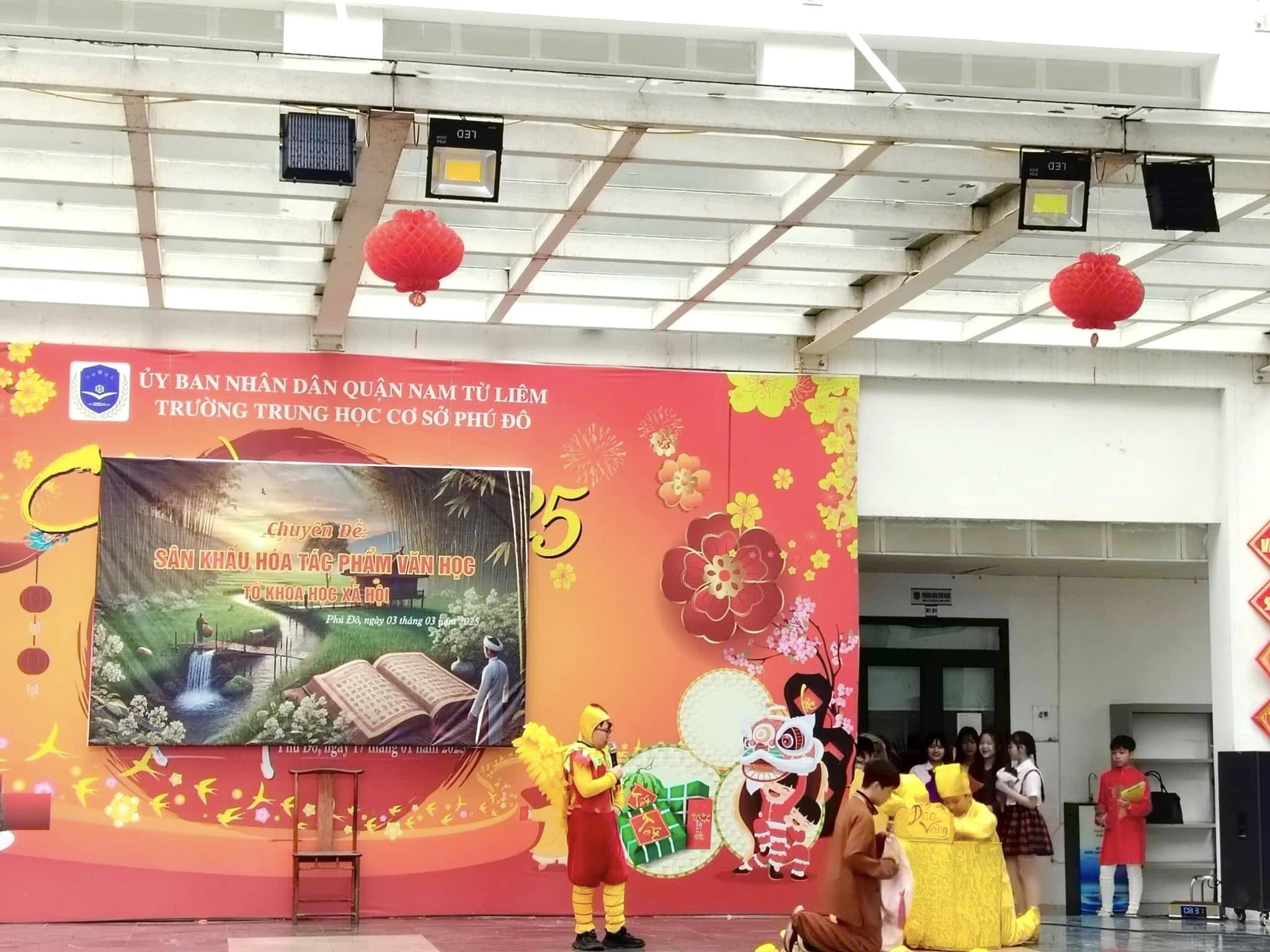 Căn cứ vào kế hoạch thực hiện nhiệm vụ năm học 2024 – 2025 của trường THCS Phú Đô và kế hoạch dạy học của tổ KHXH, sáng ngày 03/03/2025, trường THCS Phú Đô đã tổ chức thành công chương trình Sân khấu hóa tác phẩm văn học. Chuyên đề đã khơi gợi được niềm yêu thích văn học nghệ thuật, tạo ra một sân chơi mang tính sáng tạo, giúp học sinh khắc sâu kiến thức, rèn luyện kỹ năng cảm thụ tác phẩm văn học đồng thời, tạo niềm say mê, hứng thú, tích cực, sáng tạo cho học sinh trong việc học tập môn Ngữ văn.