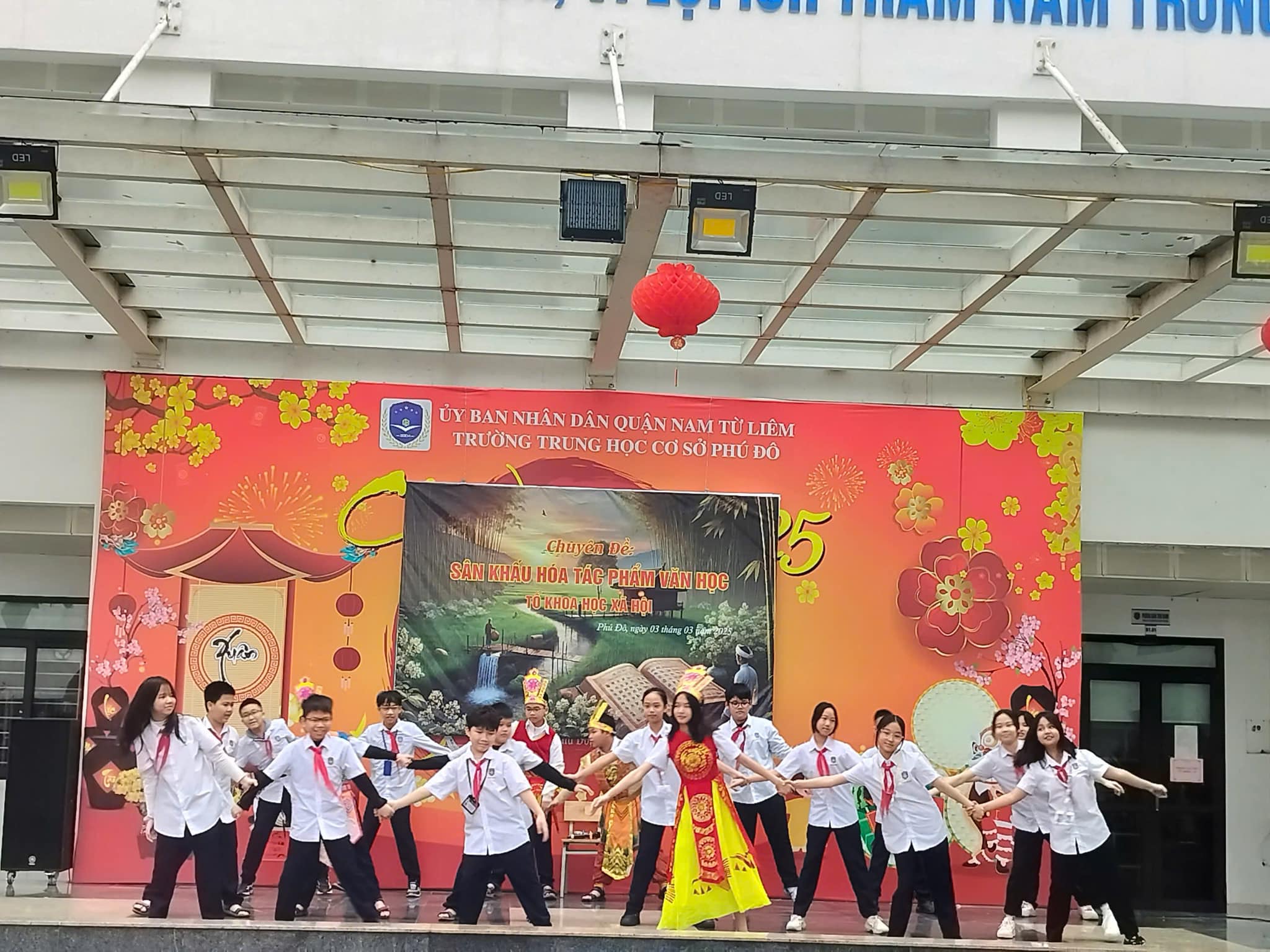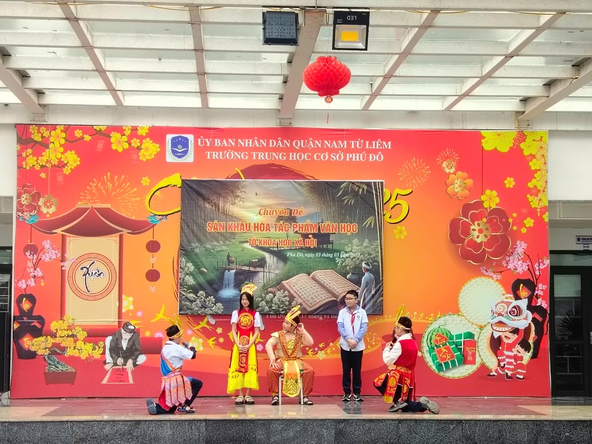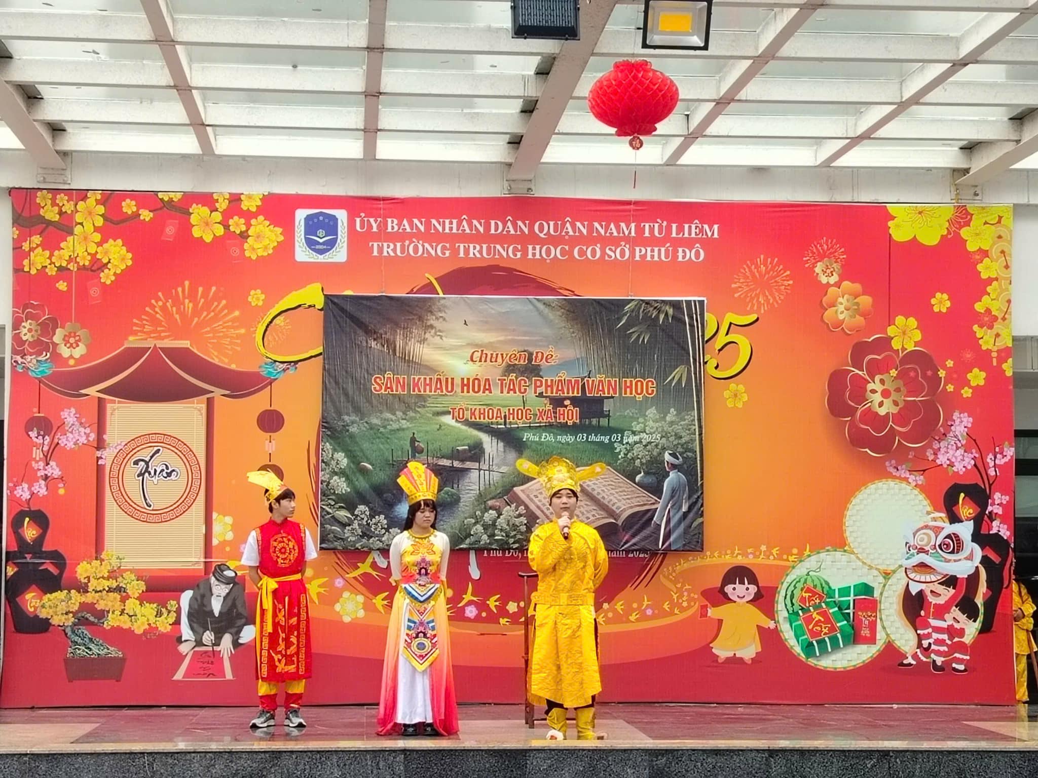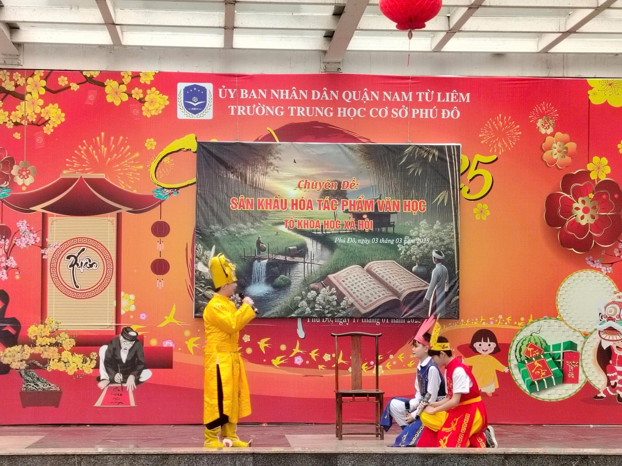 Căn cứ vào kế hoạch thực hiện nhiệm vụ năm học 2024 – 2025 của trường THCS Phú Đô và kế hoạch dạy học của tổ KHXH, sáng ngày 03/03/2025, trường THCS Phú Đô đã tổ chức thành công chương trình Sân khấu hóa tác phẩm văn học. Chuyên đề đã khơi gợi được niềm yêu thích văn học nghệ thuật, tạo ra một sân chơi mang tính sáng tạo, giúp học sinh khắc sâu kiến thức, rèn luyện kỹ năng cảm thụ tác phẩm văn học đồng thời, tạo niềm say mê, hứng thú, tích cực, sáng tạo cho học sinh trong việc học tập môn Ngữ văn.