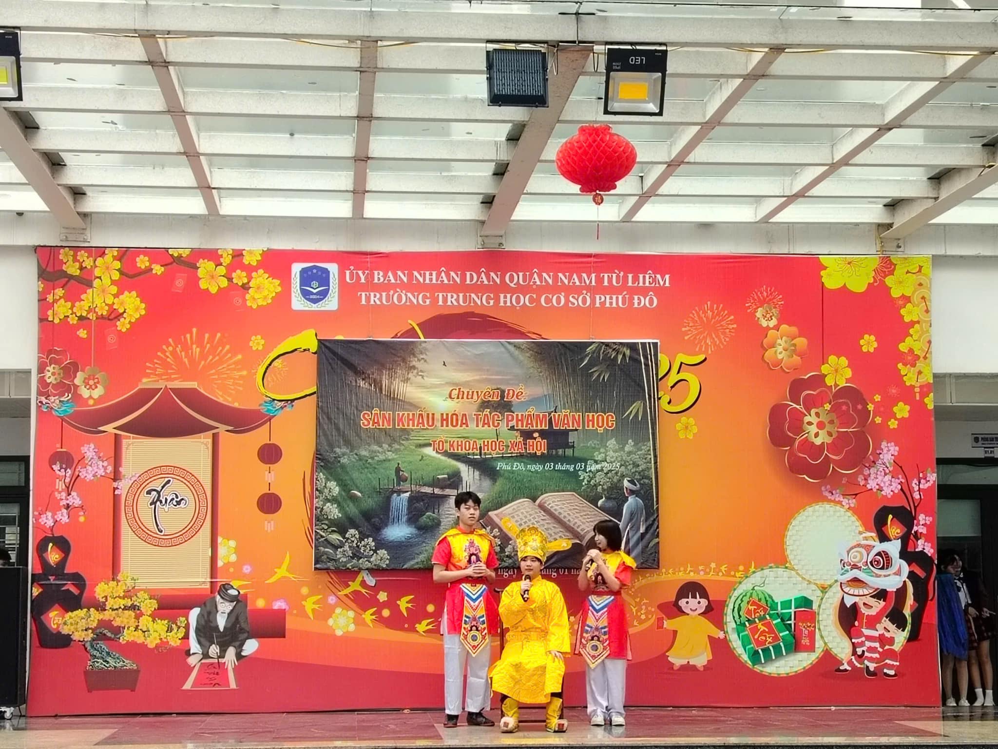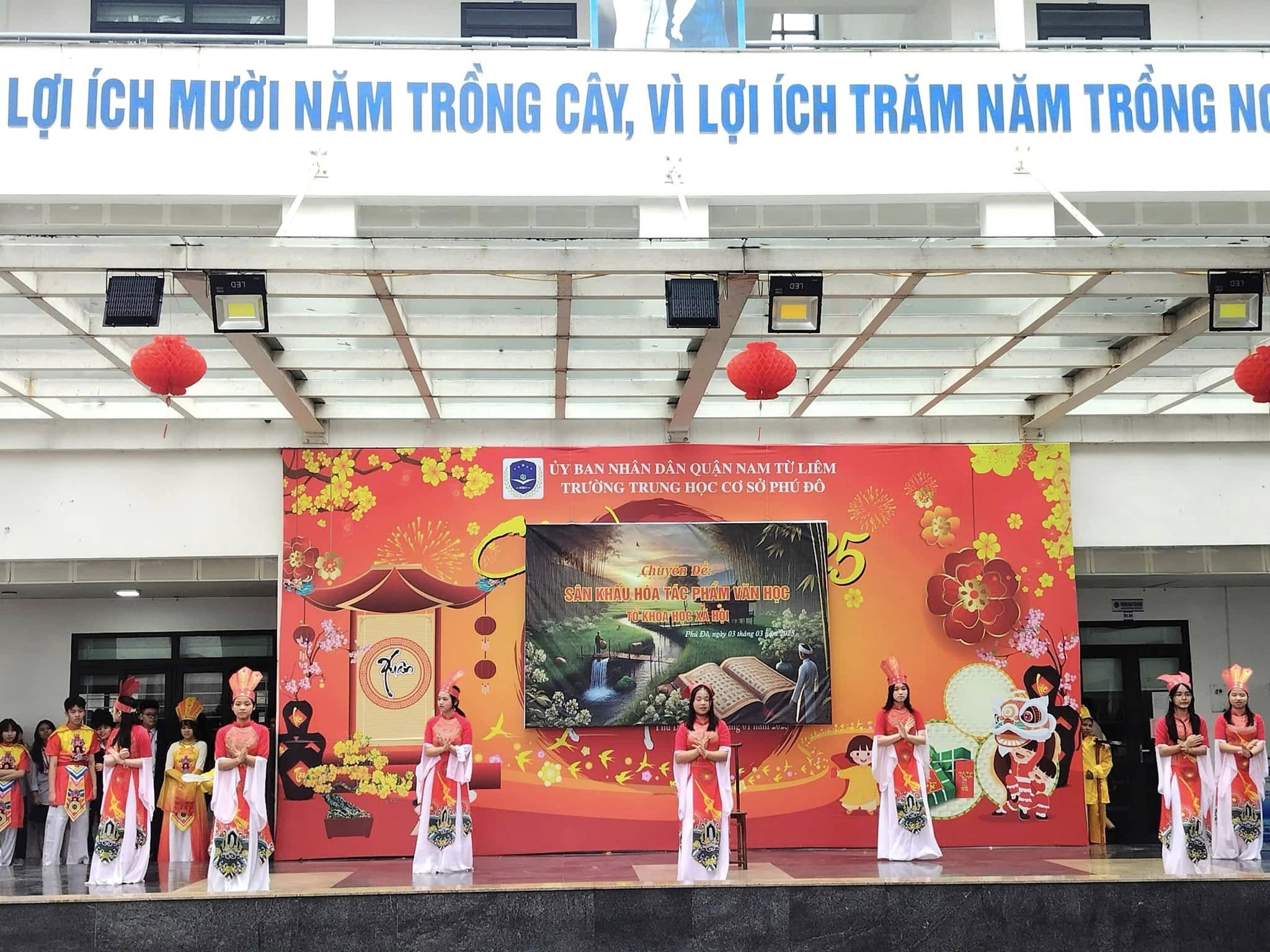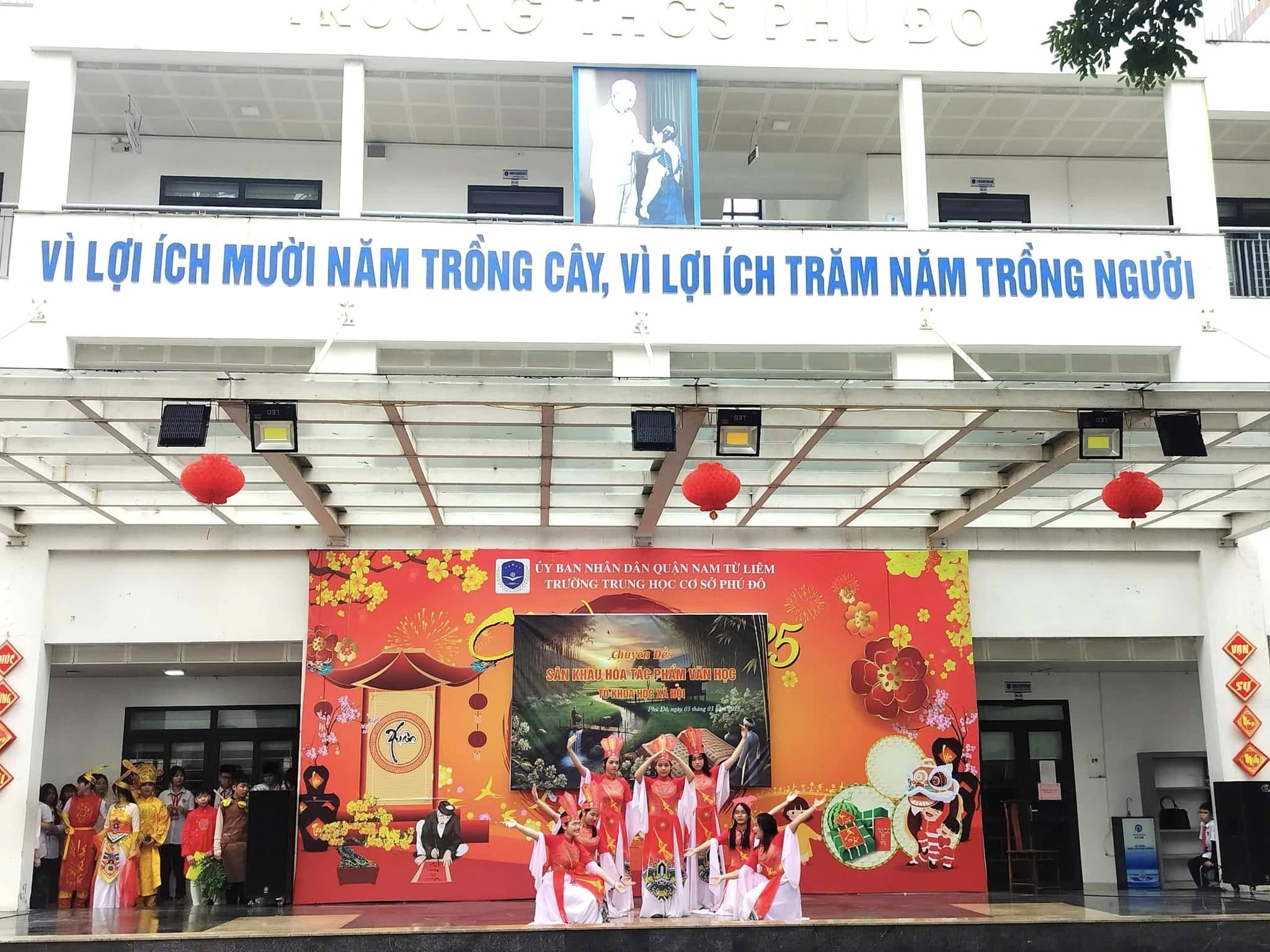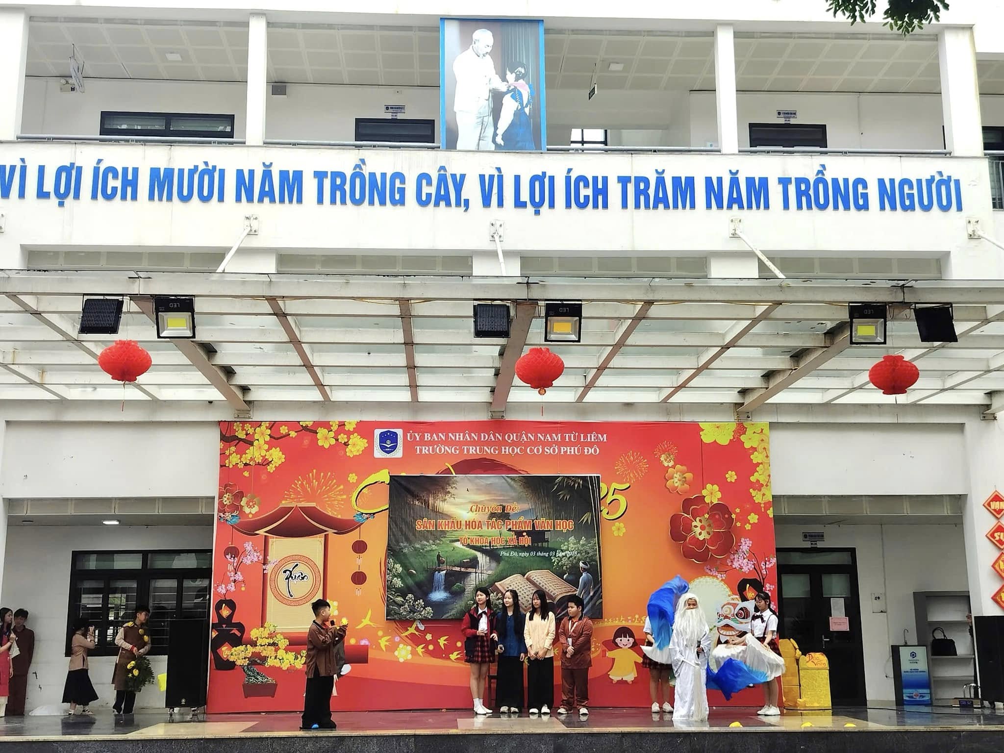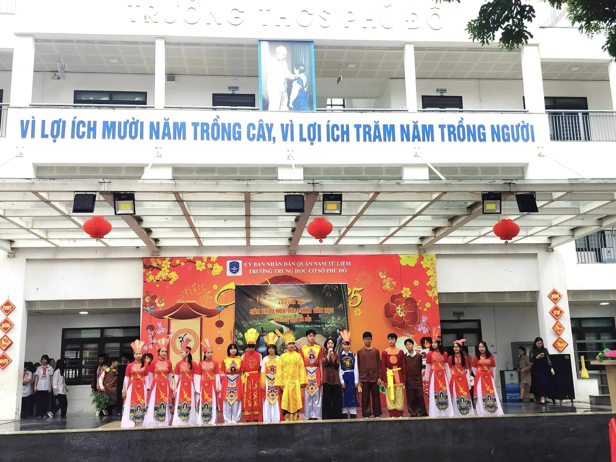 Căn cứ vào kế hoạch thực hiện nhiệm vụ năm học 2024 – 2025 của trường THCS Phú Đô và kế hoạch dạy học của tổ KHXH, sáng ngày 03/03/2025, trường THCS Phú Đô đã tổ chức thành công chương trình Sân khấu hóa tác phẩm văn học. Chuyên đề đã khơi gợi được niềm yêu thích văn học nghệ thuật, tạo ra một sân chơi mang tính sáng tạo, giúp học sinh khắc sâu kiến thức, rèn luyện kỹ năng cảm thụ tác phẩm văn học đồng thời, tạo niềm say mê, hứng thú, tích cực, sáng tạo cho học sinh trong việc học tập môn Ngữ văn.