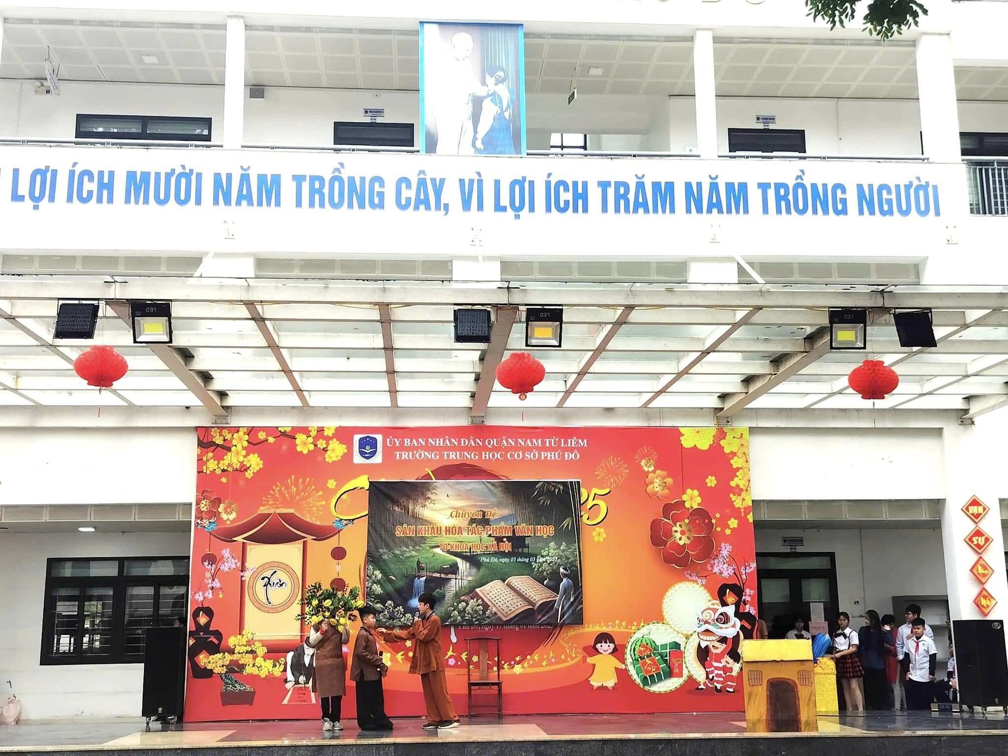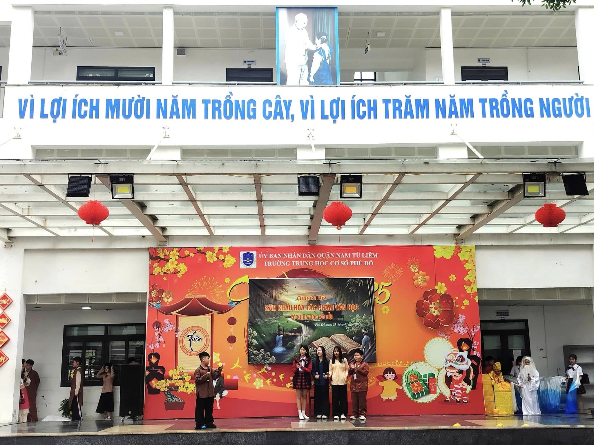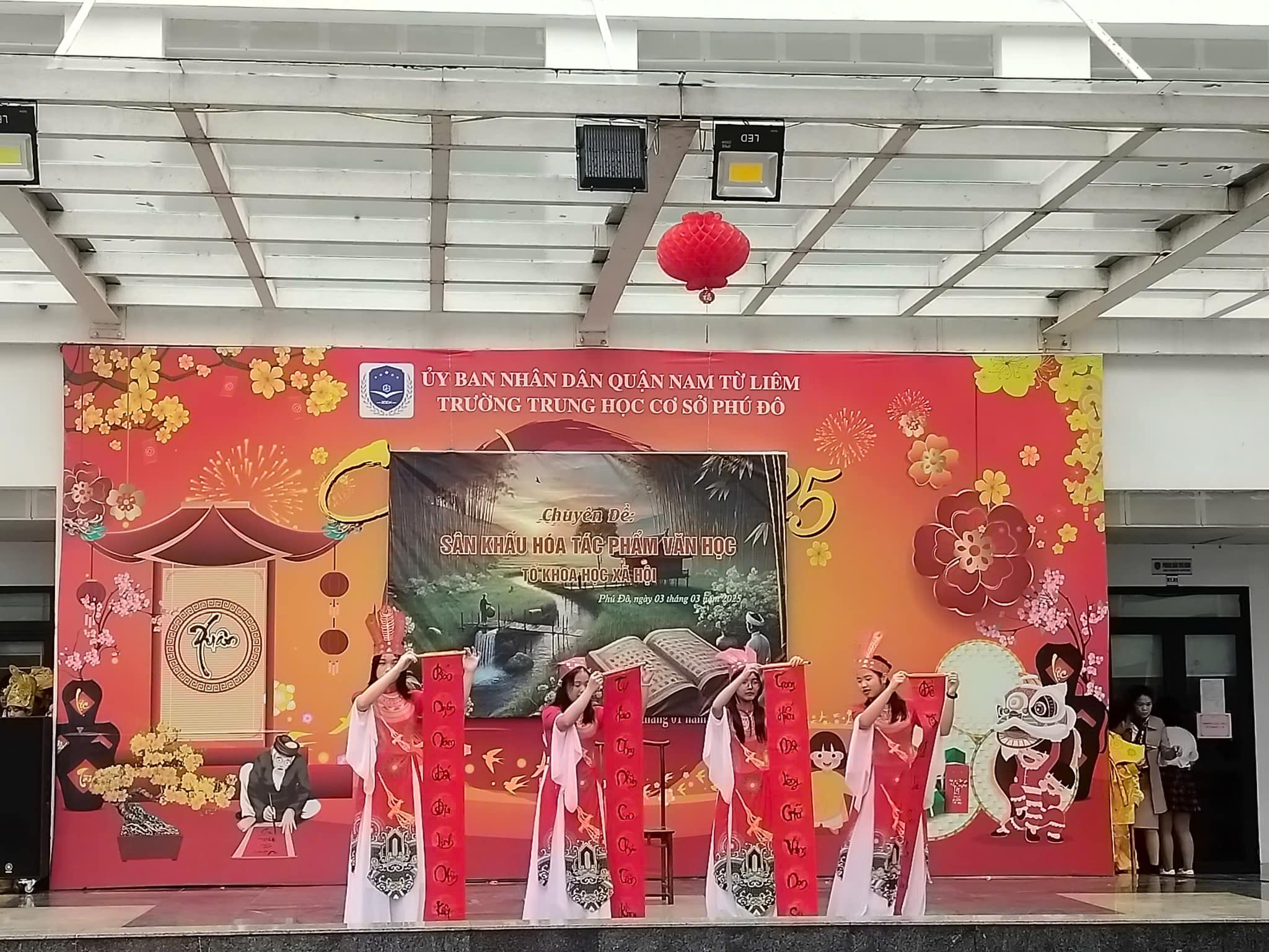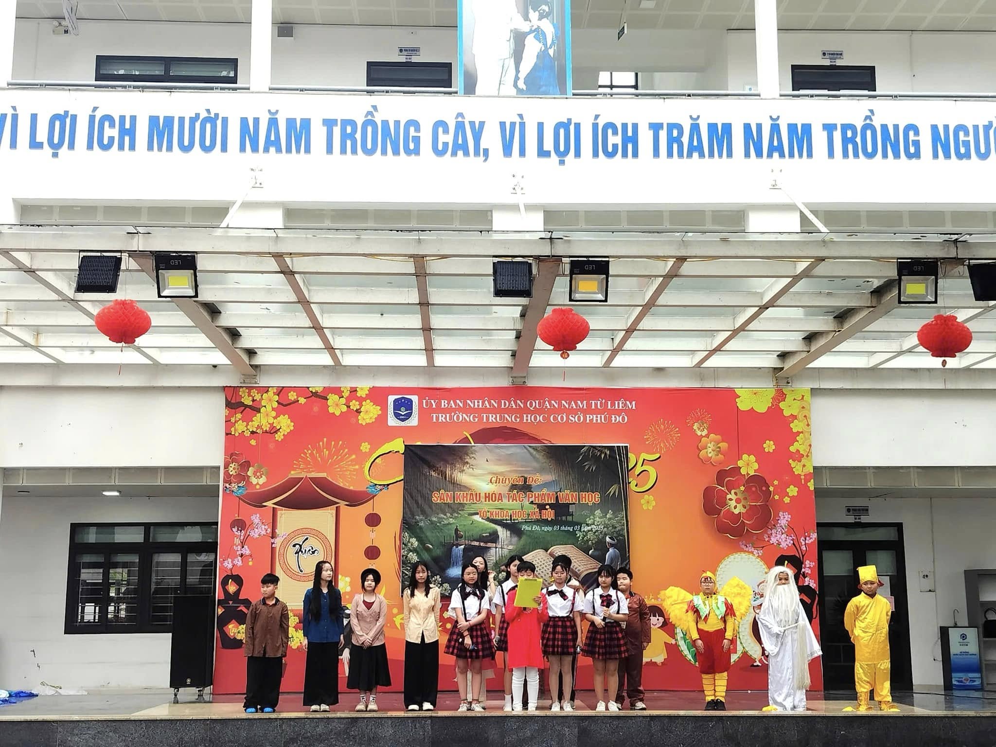 Căn cứ vào kế hoạch thực hiện nhiệm vụ năm học 2024 – 2025 của trường THCS Phú Đô và kế hoạch dạy học của tổ KHXH, sáng ngày 03/03/2025, trường THCS Phú Đô đã tổ chức thành công chương trình Sân khấu hóa tác phẩm văn học. Chuyên đề đã khơi gợi được niềm yêu thích văn học nghệ thuật, tạo ra một sân chơi mang tính sáng tạo, giúp học sinh khắc sâu kiến thức, rèn luyện kỹ năng cảm thụ tác phẩm văn học đồng thời, tạo niềm say mê, hứng thú, tích cực, sáng tạo cho học sinh trong việc học tập môn Ngữ văn.