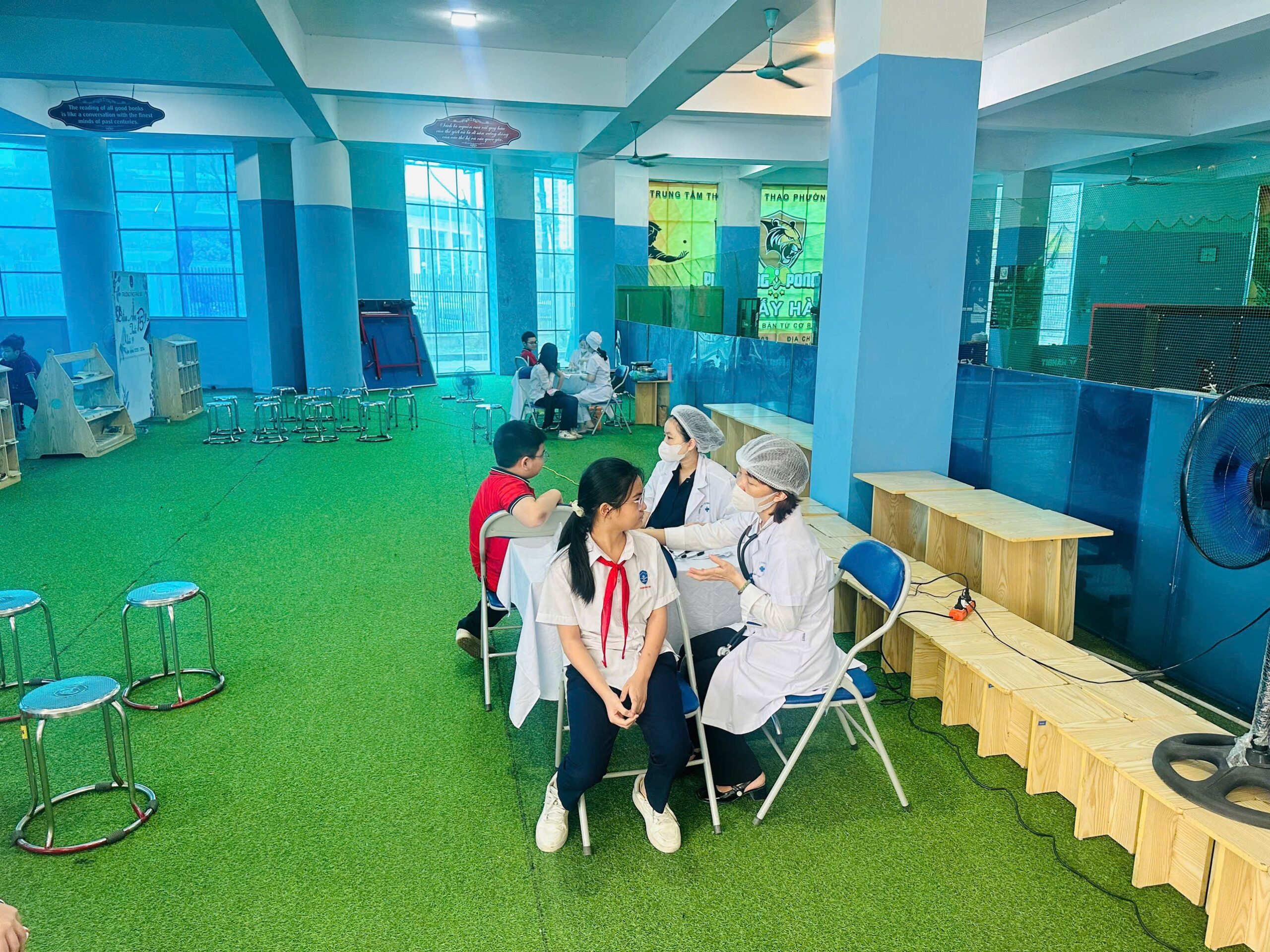 Nhằm tăng cường công tác phòng, chống dịch bệnh và bảo vệ sức khỏe cho học sinh, sáng ngày 26/04/2025, Trường THCS Phú Đô phối hợp cùng Trạm Y tế phường Phú Đô tổ chức chương trình tiêm vắc xin phòng bệnh Sởi miễn phí dành cho các em học sinh trong nhà trường.