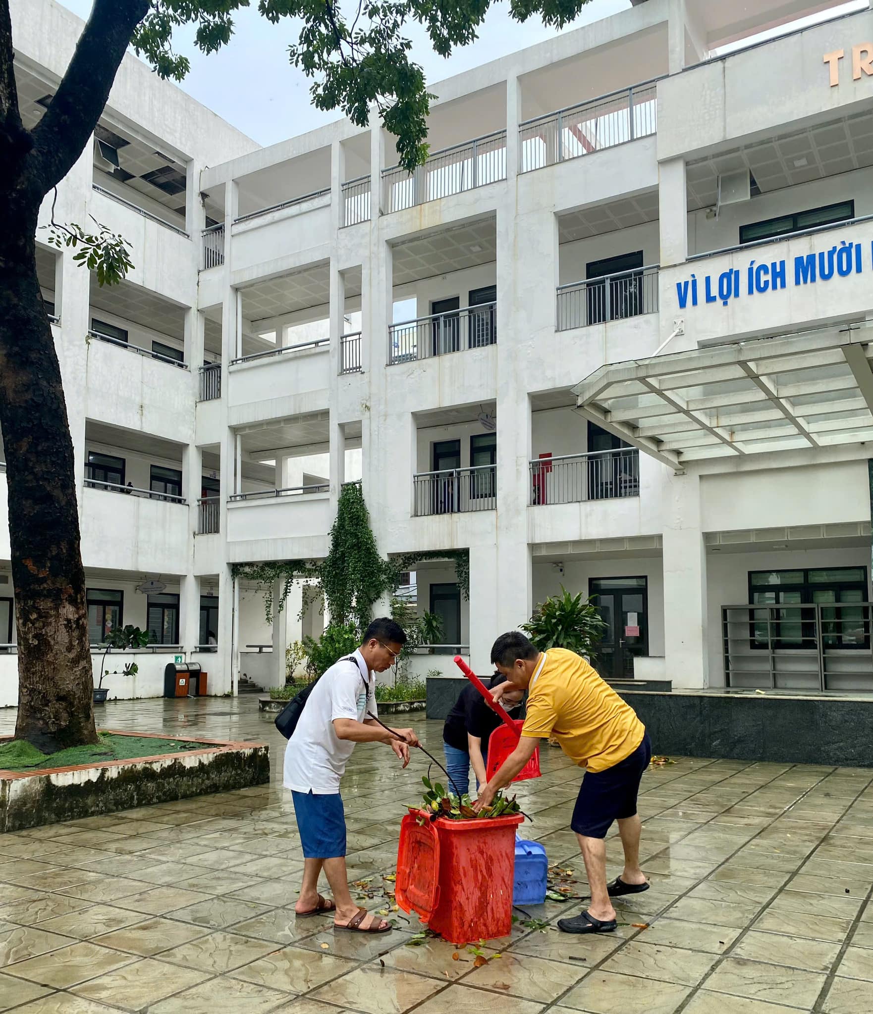 Trân trọng cảm ơn các Thầy Cô giáo, các bác Bảo vệ, các bậc Phụ huynh đã giành thời gian đến trường hỗ trợ khắc phục ảnh hưởng sau bão.